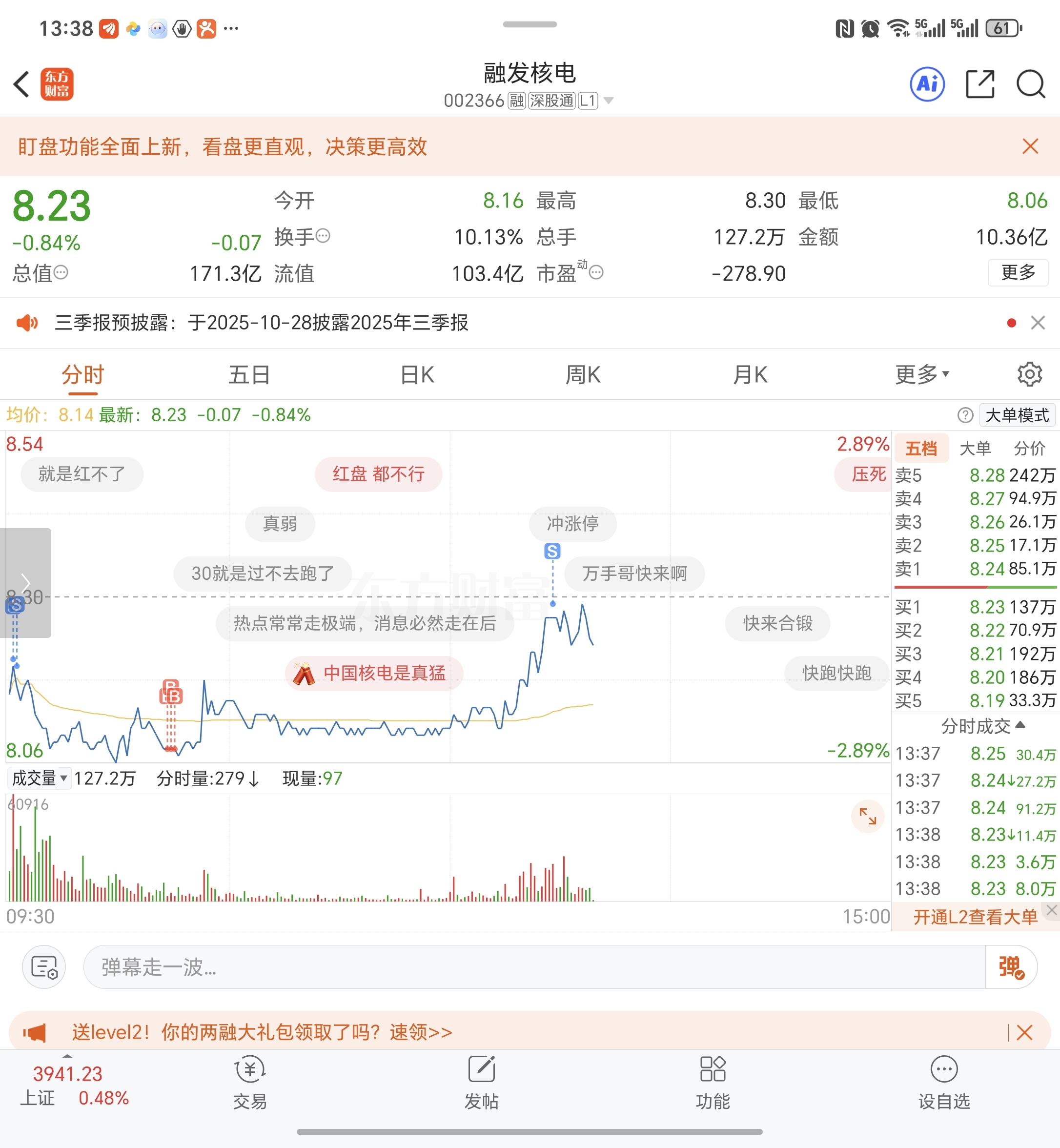 $融发核电(SZ002366)$ 上炕都费劲还上板呢