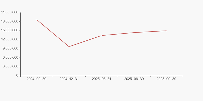 截至2025年9月30日,公司最新总股本为20.81亿股,其中流通股本为12.56亿股。户均持有流通股数量由上期的5533股上升至6518股,户均流通市值4.92万元。