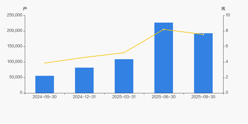 2024年9月30日至今,公司股东户数成倍增长,区间涨幅达247.33%。2024年9月30日至2025年9月30日区间股价上涨95.60%。
