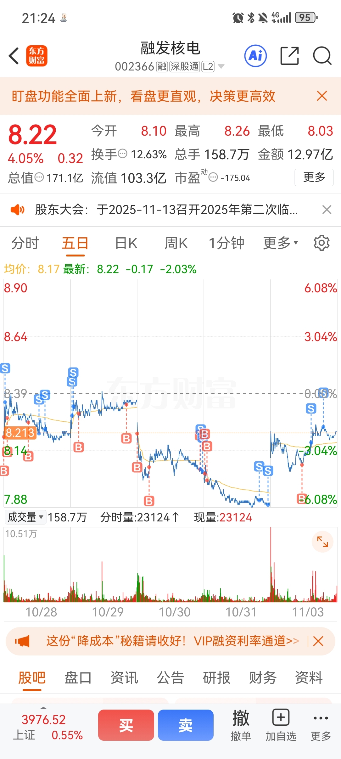 $融发核电(SZ002366)$  真的会玩,吓得我周五尾盘卖了几万,把成本从8.06整成了8.22