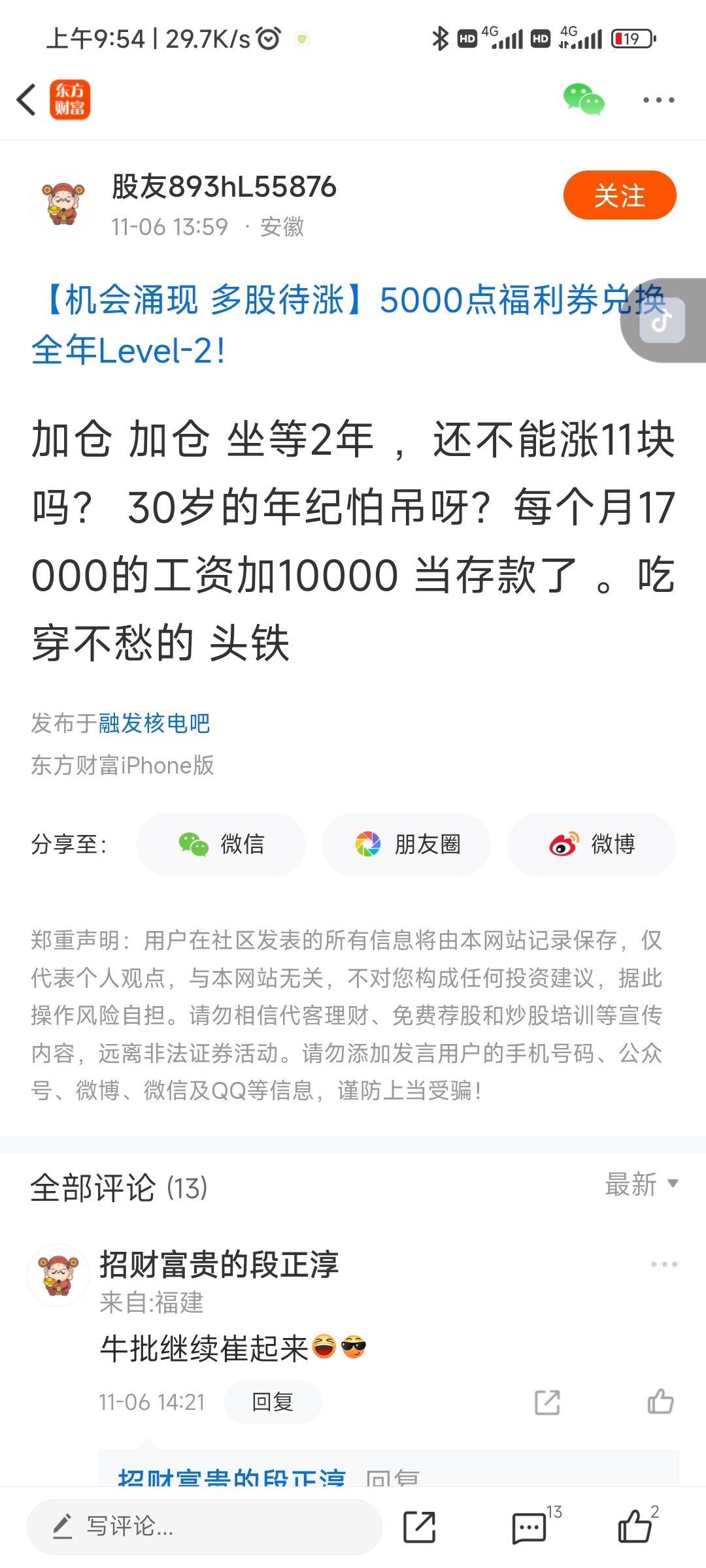 温馨提示: 1.根据《证券法》规定,禁止编造、传播虚假信息或者误导性信息,扰乱证券市场;2.用户在本社区发表的所有资料、言论等仅代表个人观点,与本网站立场无关,不对您构成任何投资建议。用户应基于自己的独立判断,自行决定证券投资并承担相应风险。《东方财富社区管理规定》