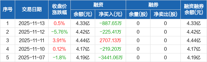 融发核电:融资净偿还887.65万元,融资余额4.33亿元(11-13)