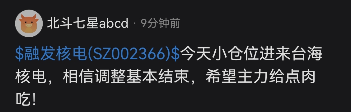 $融发核电(SZ002366)$ 鉴于还是有这种大洒哔 我决定 接下来每天跌 每天跌一点儿 用两年时间一直阴跌至2元多 到时再看是不是还有这种大洒俾再决定是开始横盘还是拉升