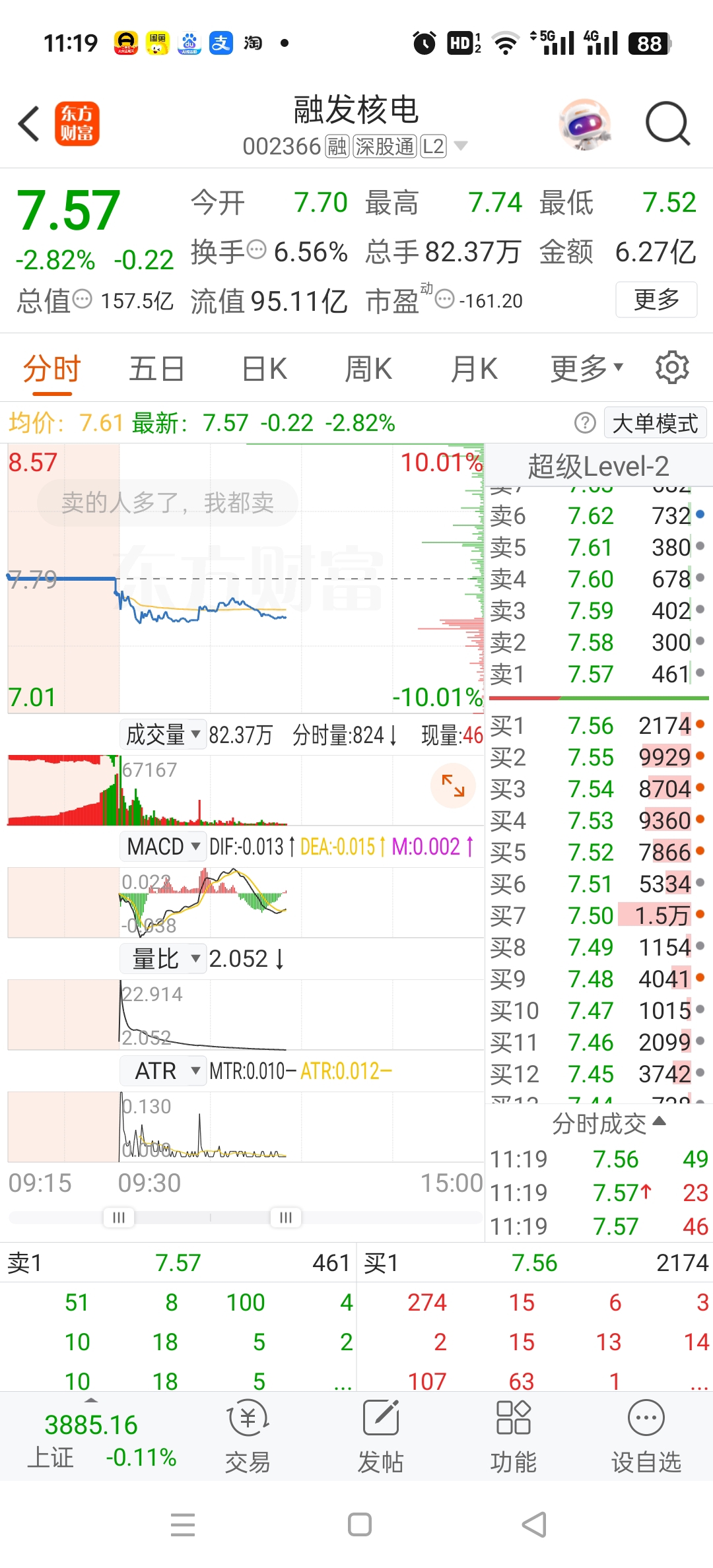 $融发核电(SZ002366)$ 下方全是托单,必跌破,