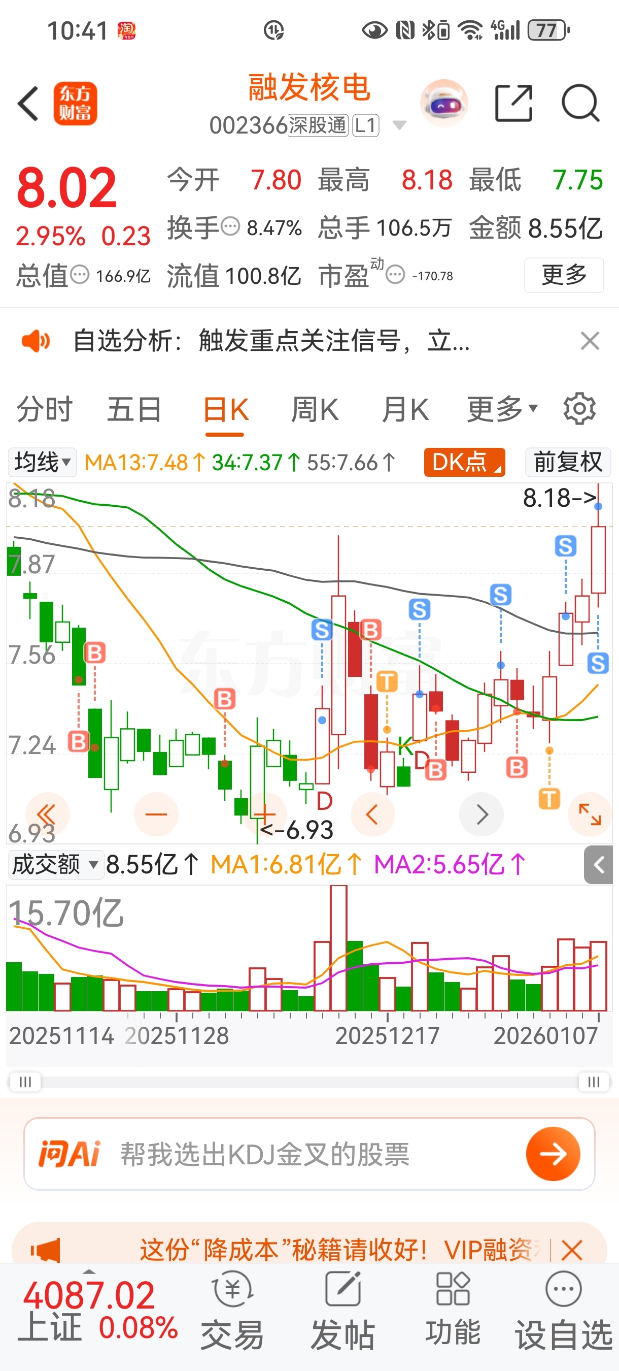 $融发核电(SZ002366)$ 卖一些