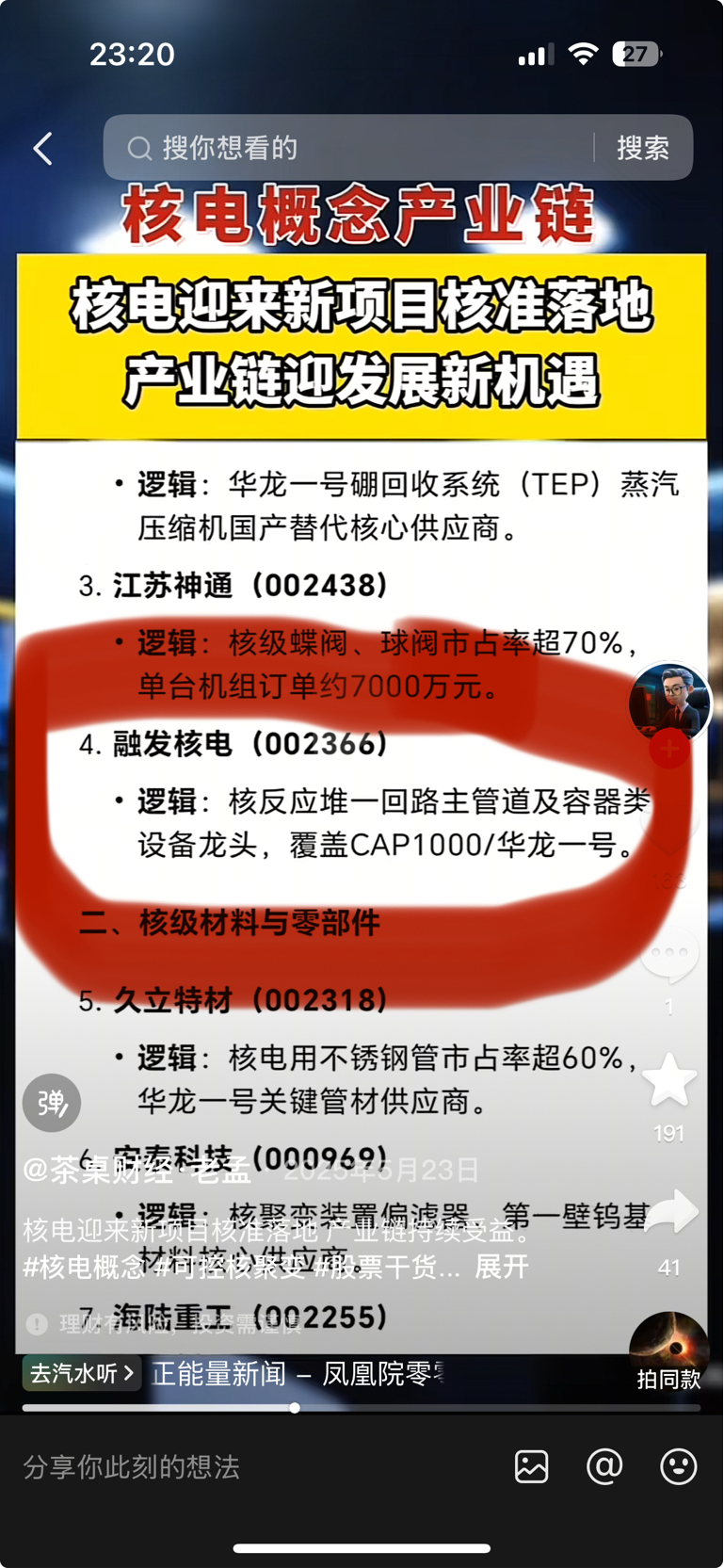 $融发核电(SZ002366)$ 周一能拉一波吗