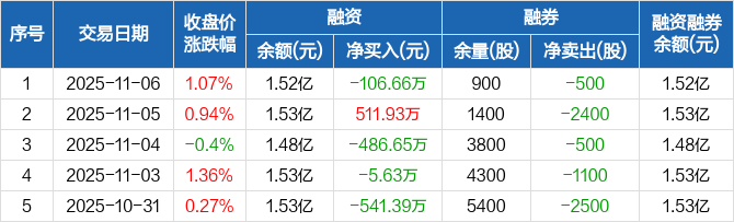 康力电梯:融资净偿还106.66万元,融资余额1.52亿元(11-06)