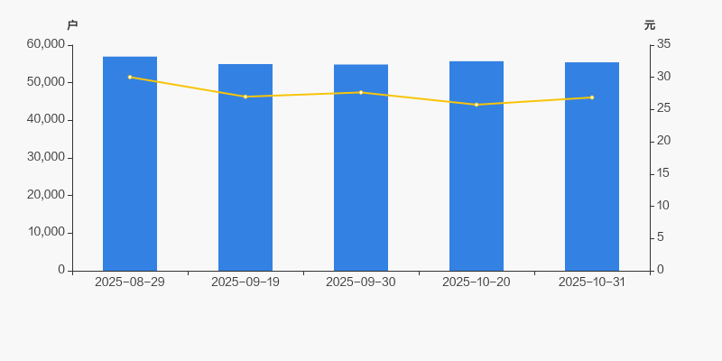 2025年8月29日至今,公司股东户数有所下降,区间跌幅为2.68%。2025年8月29日至2025年10月31日区间股价下降10.52%。