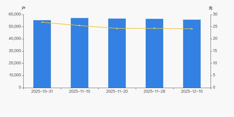 自2025年11月10日以来,公司股东户数连续3期下降,截至目前减幅为2.38%。2025年11月10日至2025年12月10日区间股价下降5.21%。
