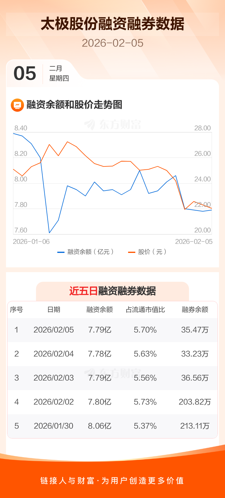 交易所最新数据显示,太极股份于2026年2月5日获融资买入962.14万元,融资偿还949.11万元,当日融资净买入13.04万元。目前,该股融资余额7.79亿,占流通市值比例为5.70%。