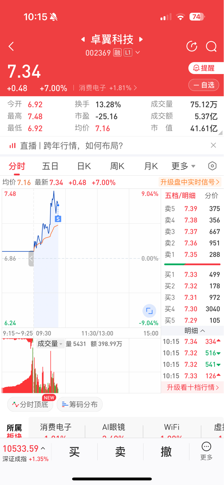 $卓翼科技(SZ002369)$ 留了个底舱