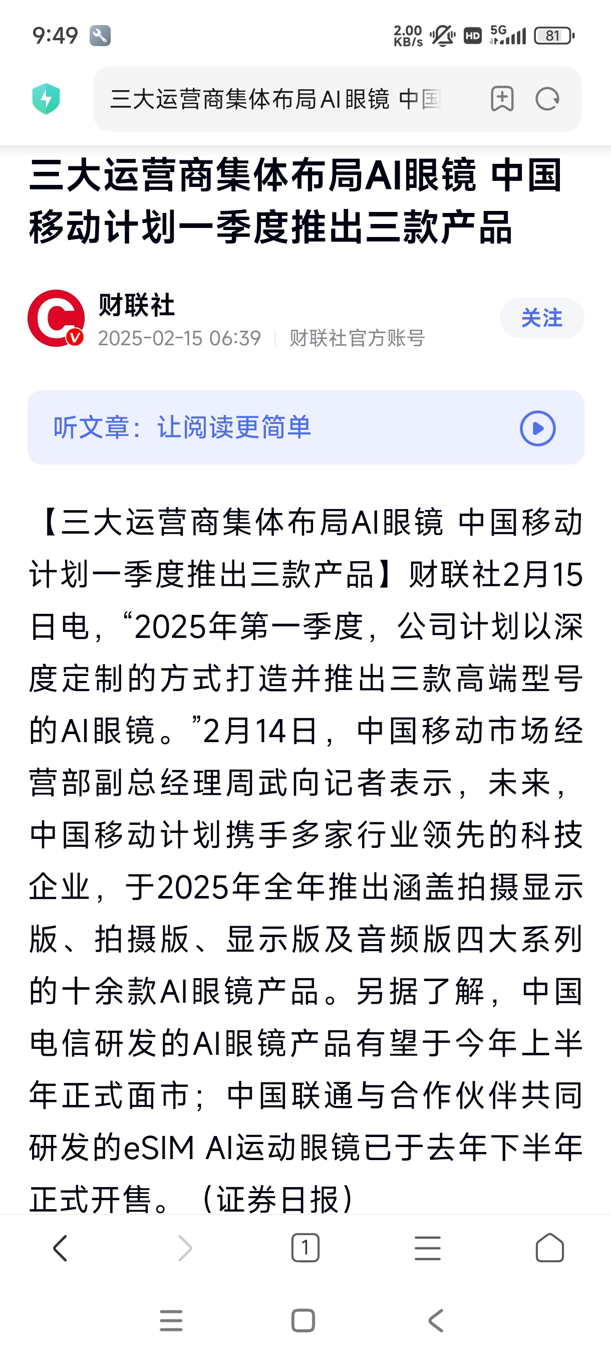 三大运营商布局ai眼睛,下周卓翼给个低收机会
