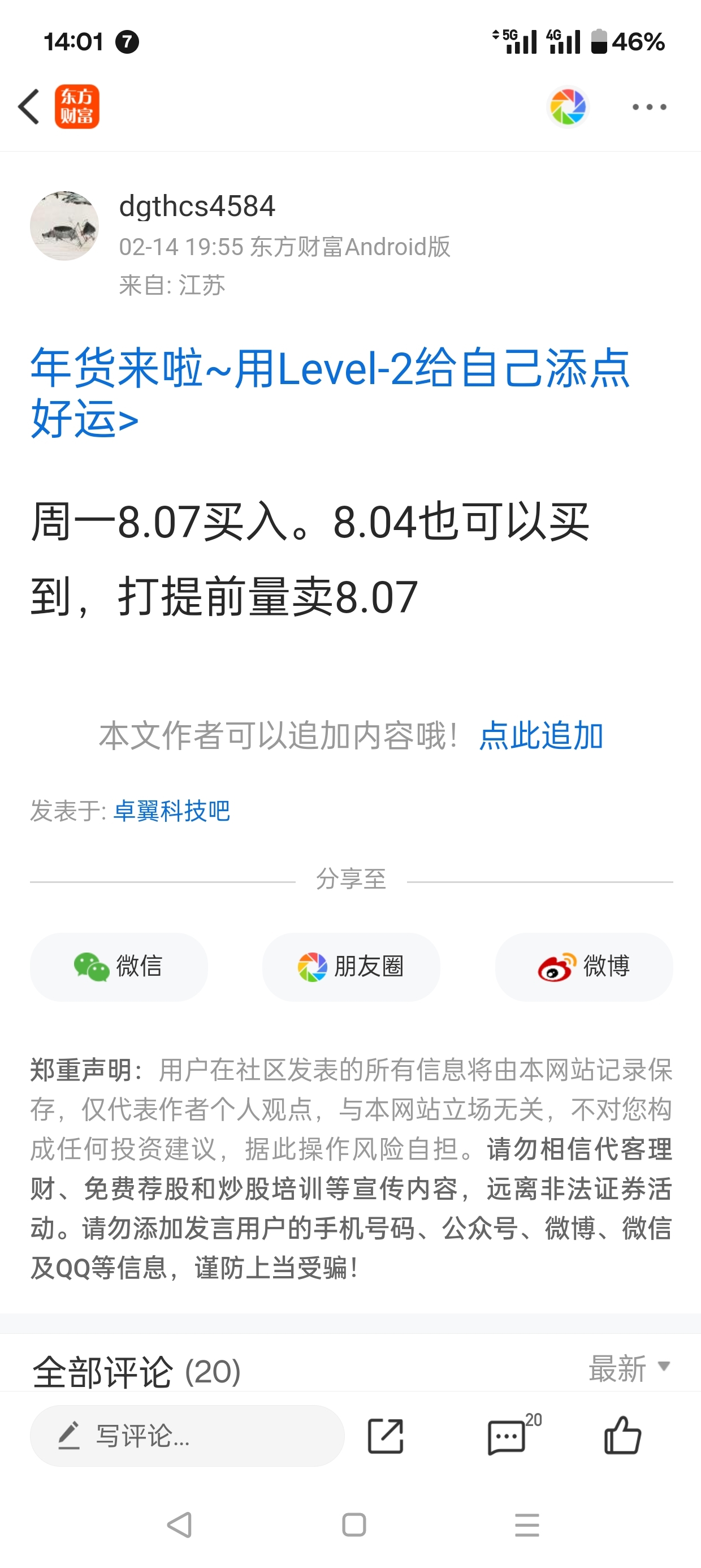 温馨提示: 1.根据《证券法》规定,禁止编造、传播虚假信息或者误导性信息,扰乱证券市场;2.用户在本社区发表的所有资料、言论等仅代表个人观点,与本网站立场无关,不对您构成任何投资建议。用户应基于自己的独立判断,自行决定证券投资并承担相应风险。《东方财富社区管理规定》