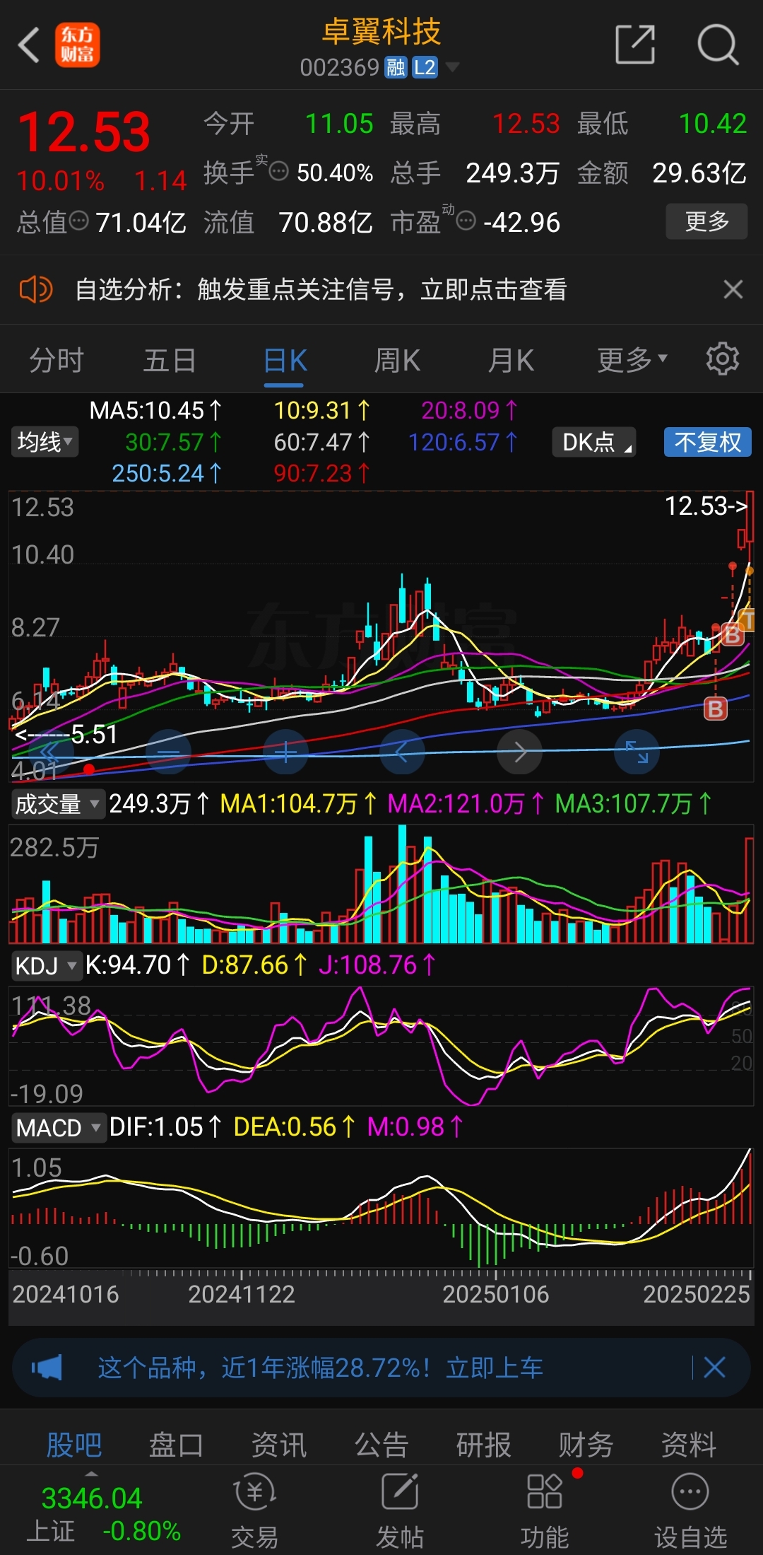$卓翼科技(SZ002369)$ 尾盘就剩底仓谢谢主力