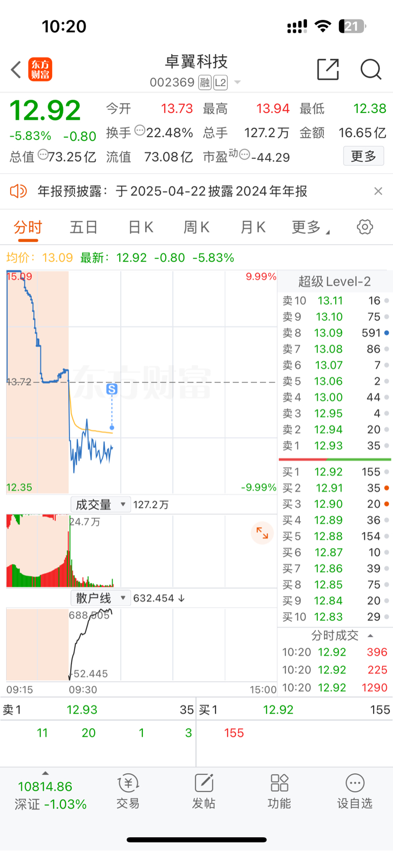 $卓翼科技(SZ002369)$ 这一波又套了多少兄弟,出货图形的走势卖飞了也值了,十次有九次跌停,还是不要抱侥幸心理