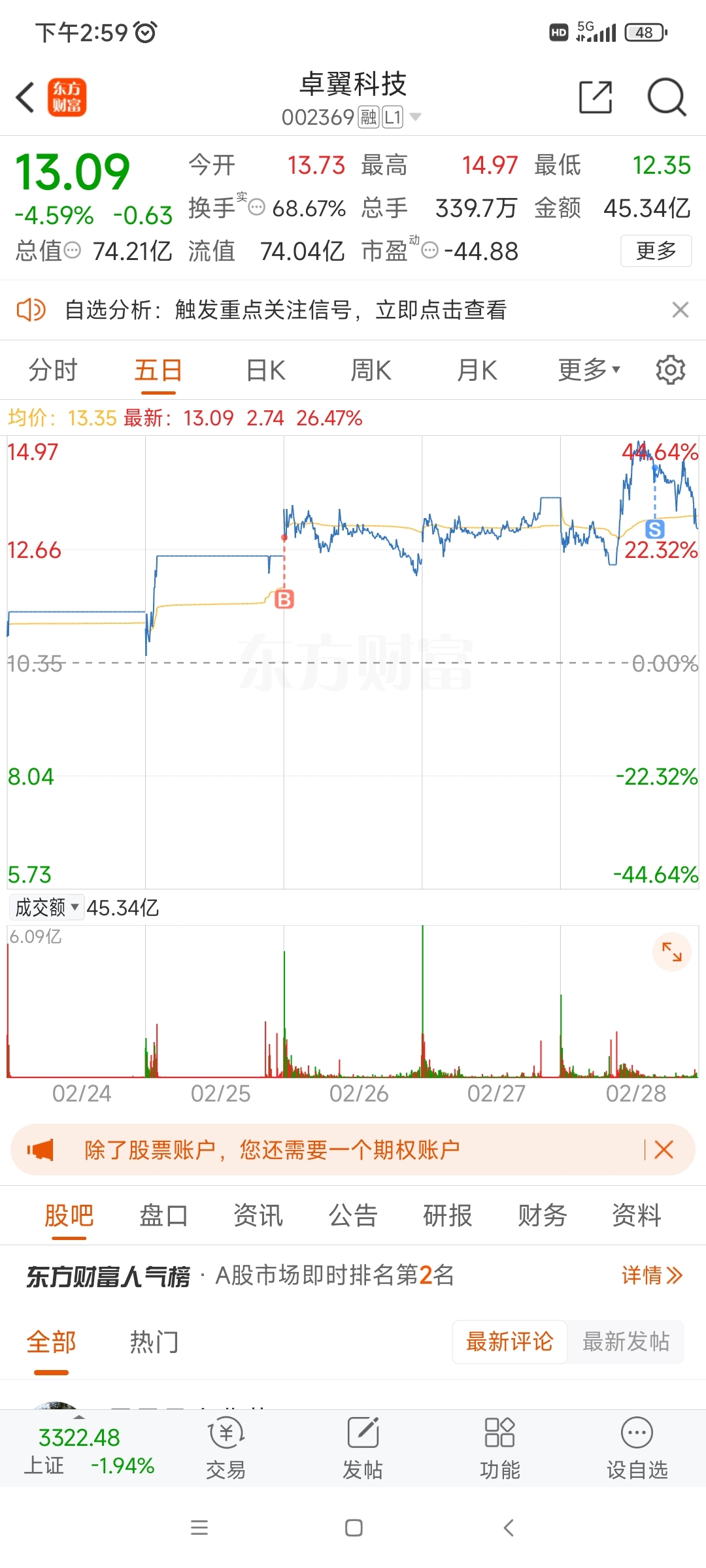 温馨提示: 1.根据《证券法》规定,禁止编造、传播虚假信息或者误导性信息,扰乱证券市场;2.用户在本社区发表的所有资料、言论等仅代表个人观点,与本网站立场无关,不对您构成任何投资建议。用户应基于自己的独立判断,自行决定证券投资并承担相应风险。《东方财富社区管理规定》