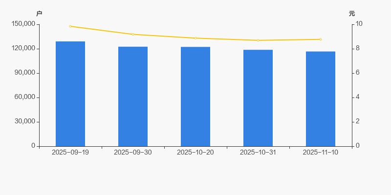 2025年9月19日至今,公司股东户数有所下降,区间跌幅为9.61%。2025年9月19日至2025年11月10日区间股价下降10.87%。