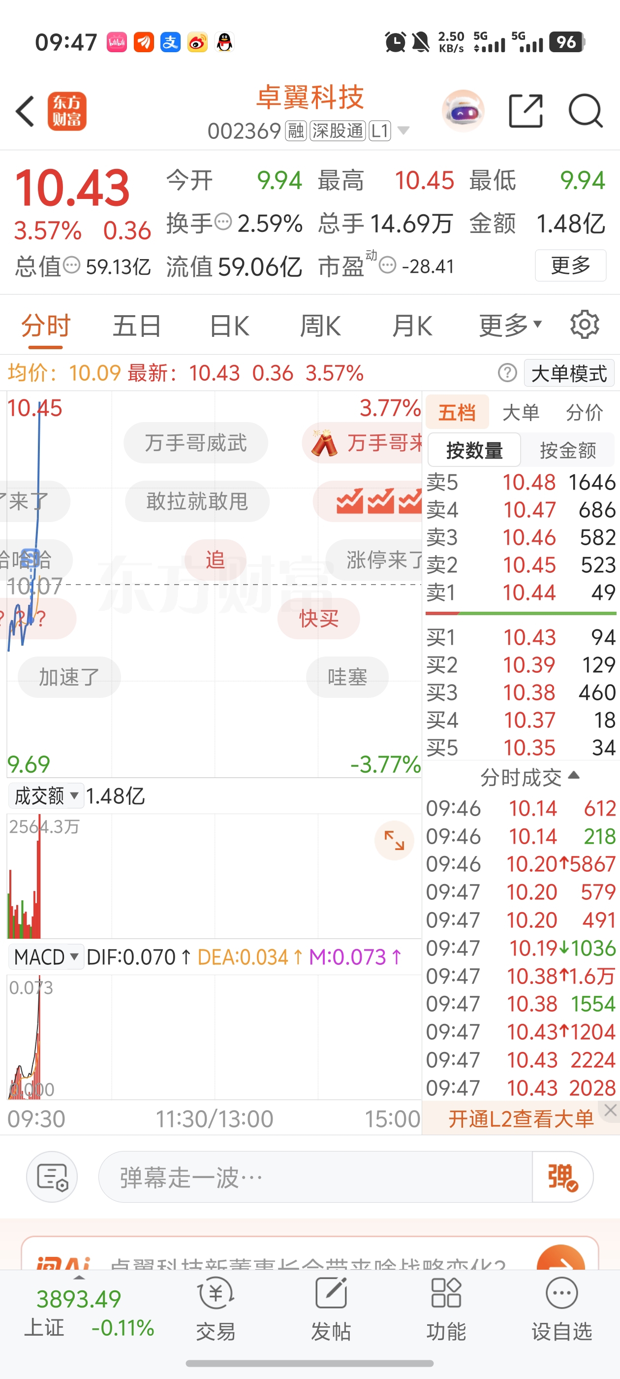$卓翼科技(SZ002369)$ 我刚卖就拉,几个意思?