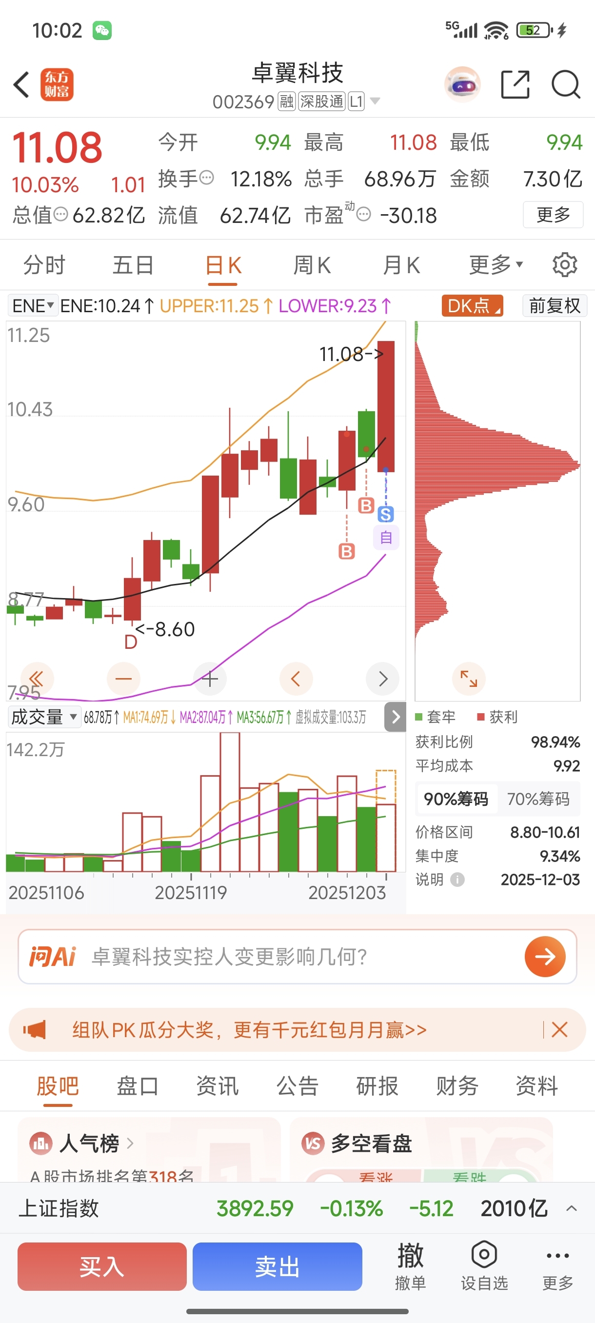 $卓翼科技(SZ002369)$ 昨天加仓,今天卖在最低点,涨停了!我真是人才,滴血!