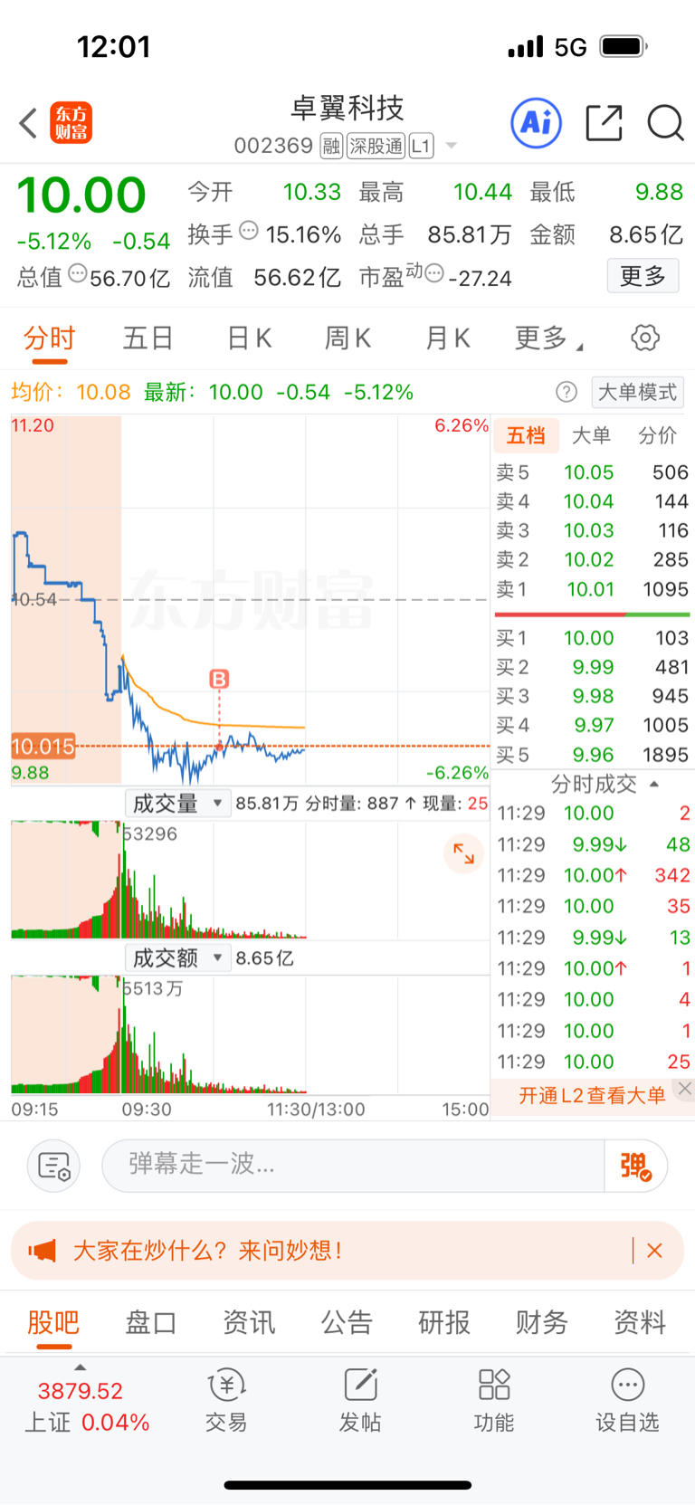 $卓翼科技(SZ002369)$ 加油大爷,昨天清仓,今天接回来