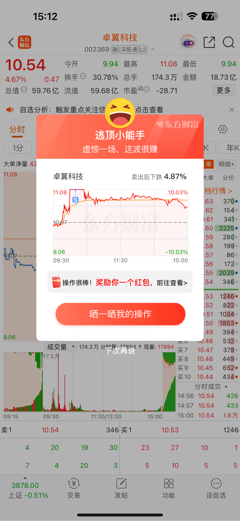 $卓翼科技(SZ002369)$ 回来一看!昨天真的跑对了!不敢再进了!!祝留下的发财!今天大红