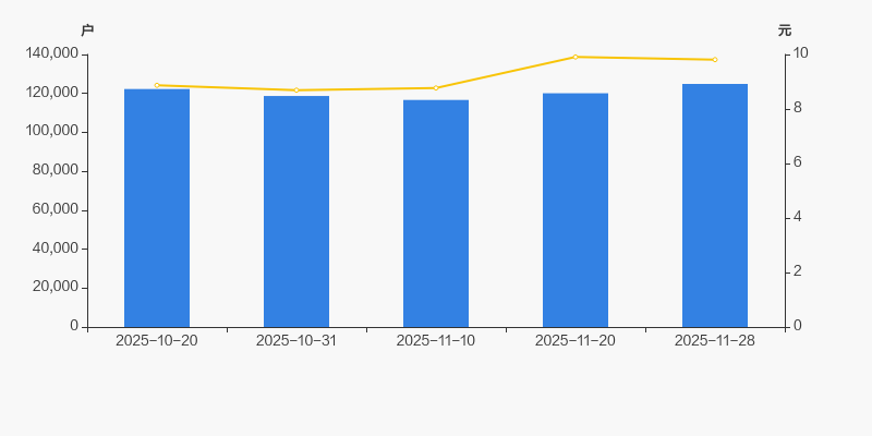 2025年10月20日至今,公司股东户数有所增长,区间涨幅为2.14%。2025年10月20日至2025年11月28日区间股价上涨10.60%。