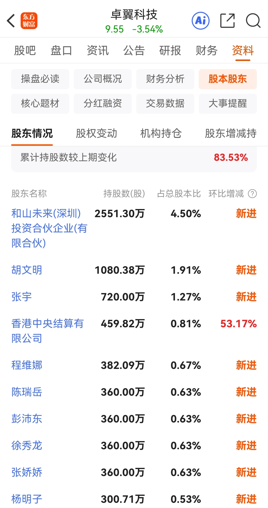 $卓翼科技(SZ002369)$ 天天都在喊主力!主力!哪里来的主力嘛?先去看看最大股东持股多少!股权严重不集中,公司又小,还都是散户持股,说明大佬都不看好,涨上去都是散户获利,怎么可能大涨呢除非股东增持,有大资金进入,先让股权集中才有戏