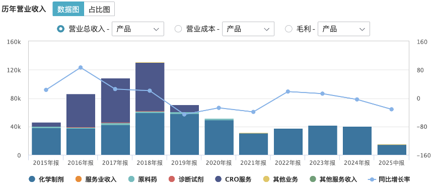 财报数据显示,2019–2024年公司扣非净利润连续六年累计亏损超过25亿元。即使剔除巨额商誉减值的2019年,公司近四年扣非净利润年均亏损亦达数亿元。2025年上半年,公司营业收入约1.52亿元,同比下滑31.48%;扣非后净亏损约0.49亿元。可以说,亚太药业目前的实际盈利能力与其市值之间存在明显错位。