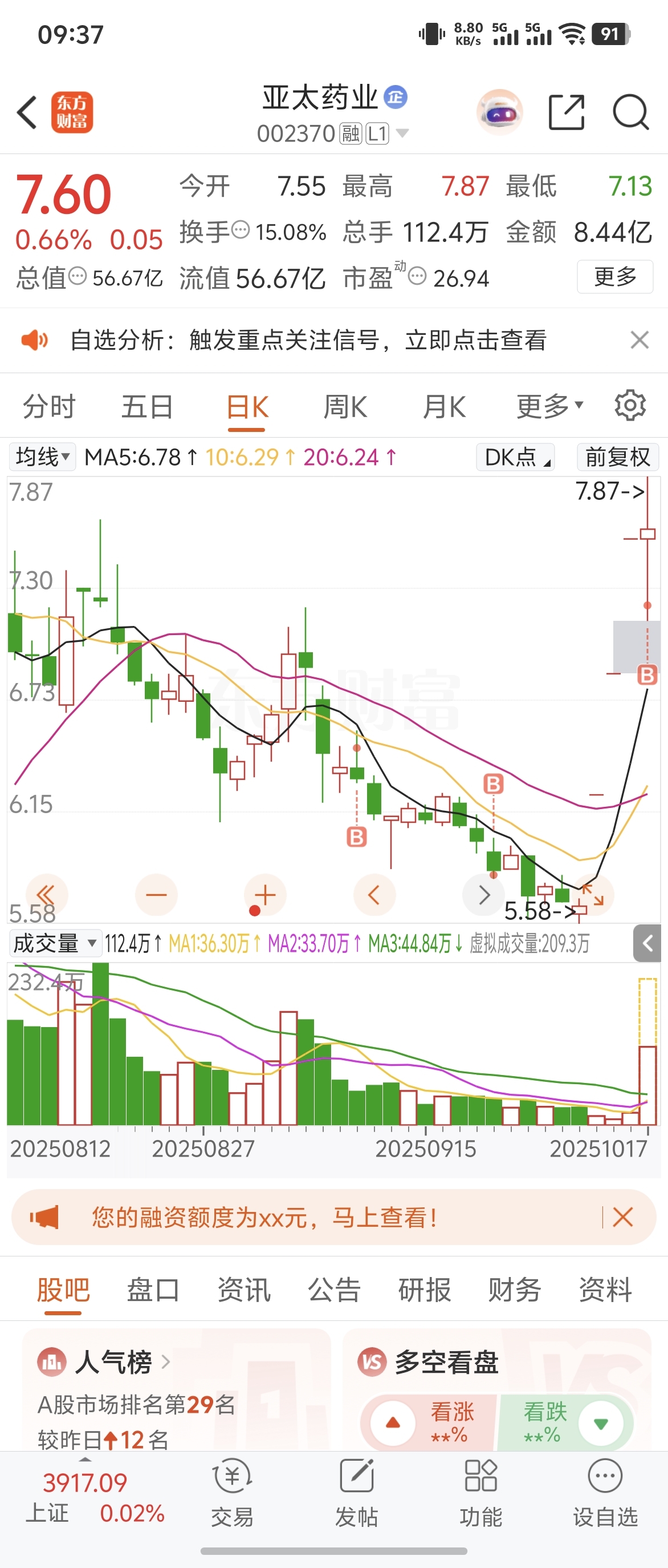 $亚太药业(SZ002370)$ 谁稀罕你进了,弹幕口嗨有毛用。开板就是加仓,目标10快以上不变