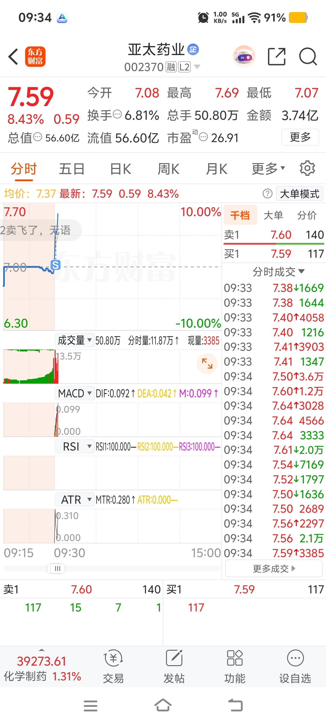 $亚太药业(SZ002370)$ 胆小赚钱就跑了,
