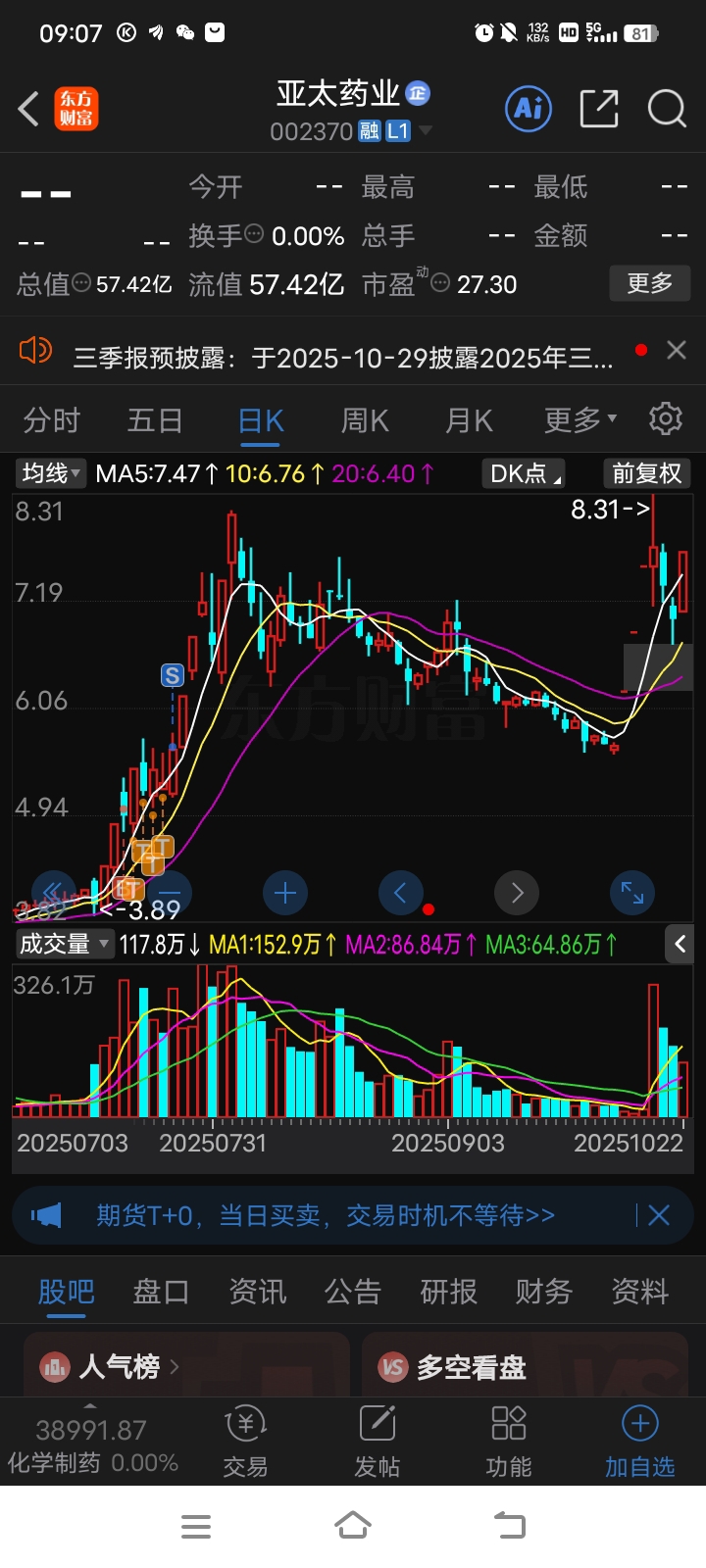 $亚太药业(SZ002370)$ 把我吓得屁股尿流无语,亏钱走的
