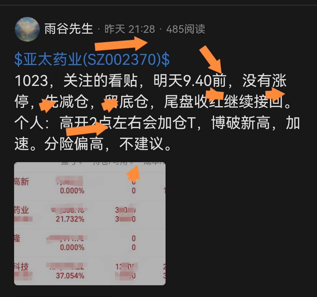 $亚太药业(SZ002370)$ 关注的看贴,开0.26转弱,9.32冲高2.5减仓,提示9.40前涨停,没有减,留1成底仓。