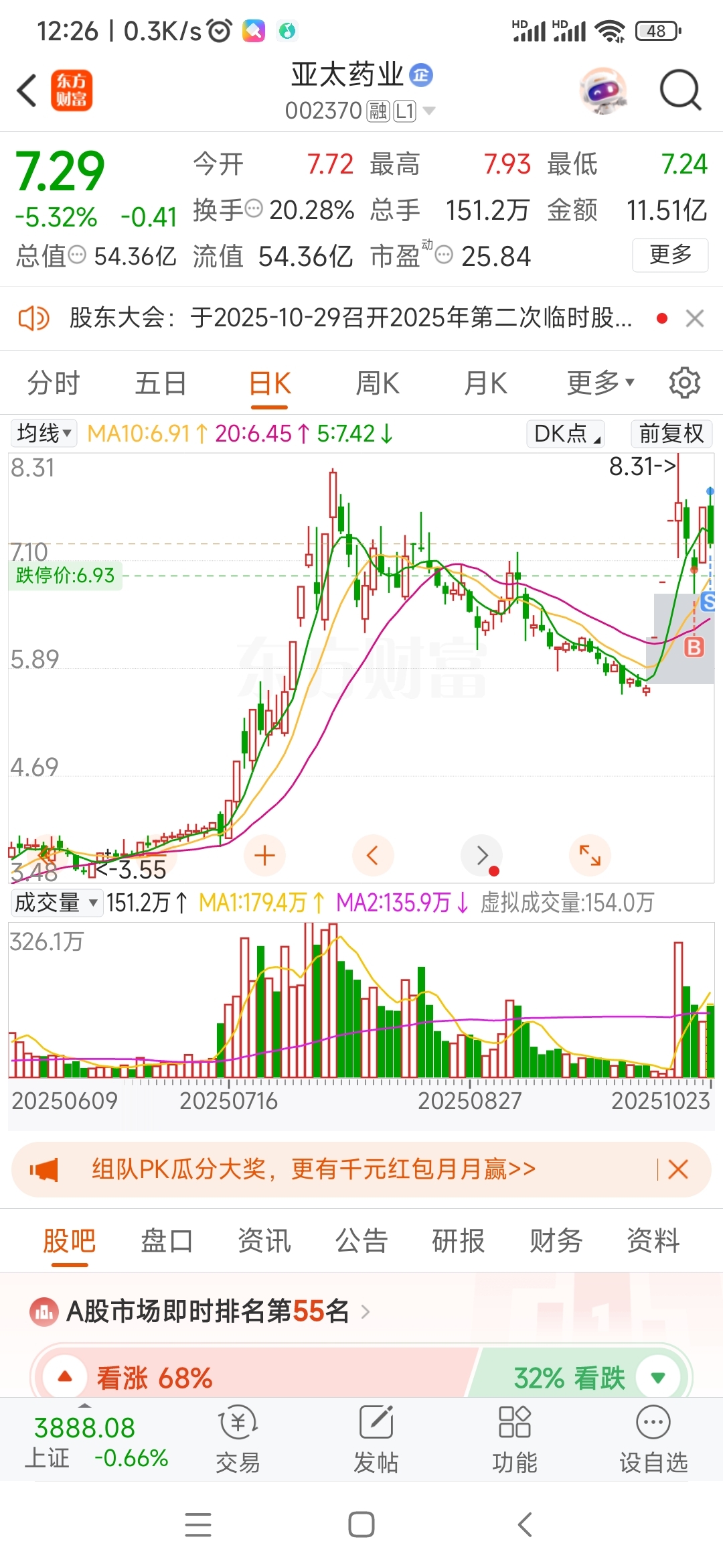 $亚太药业(SZ002370)$ 吃了12多个点,昨天三天的会也开完了。找合适机会再干了……