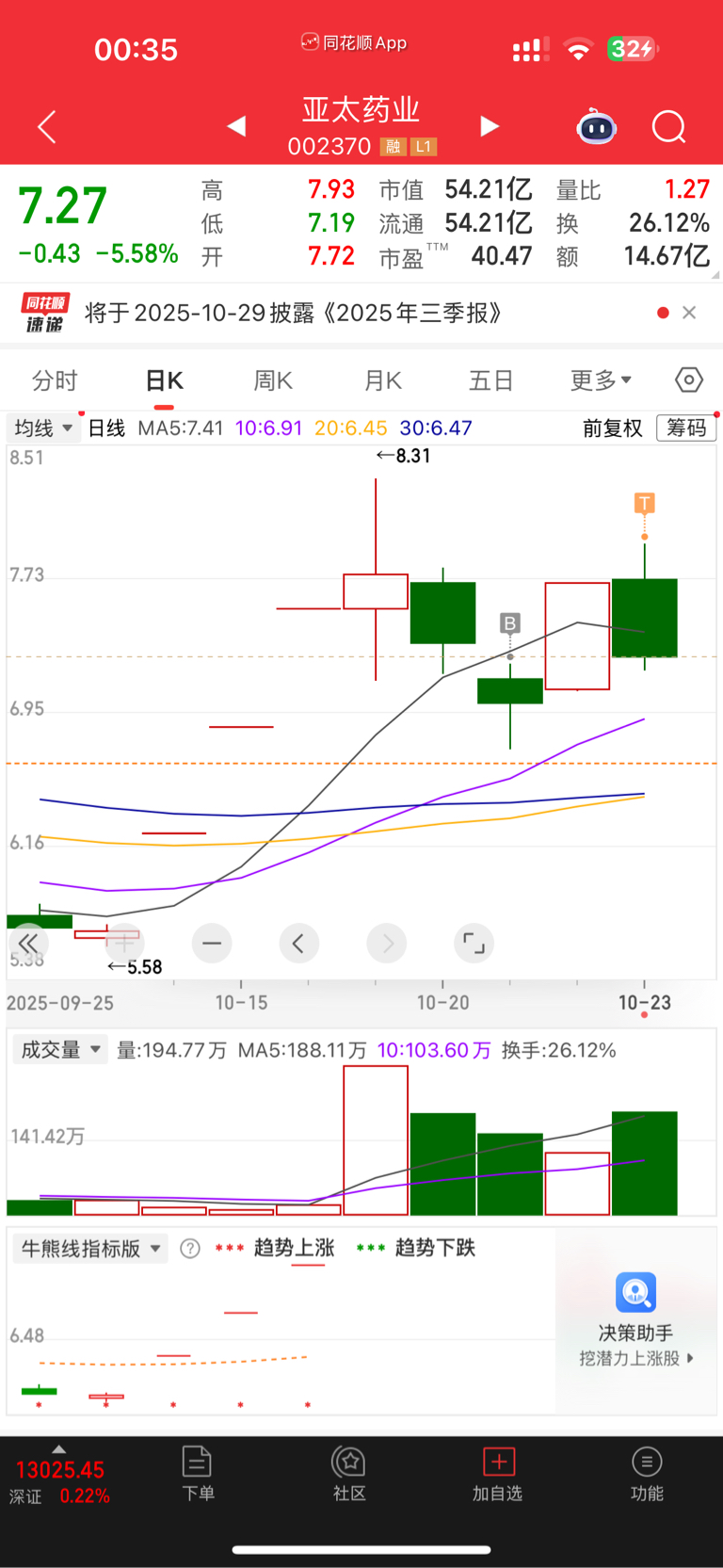 $亚太药业(SZ002370)$ 逃顶小能手来了