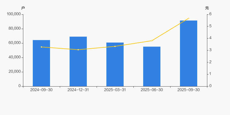 2024年9月30日至今,公司股东户数显著增长,区间涨幅为42.35%。2024年9月30日至2025年9月30日区间股价上涨72.87%。