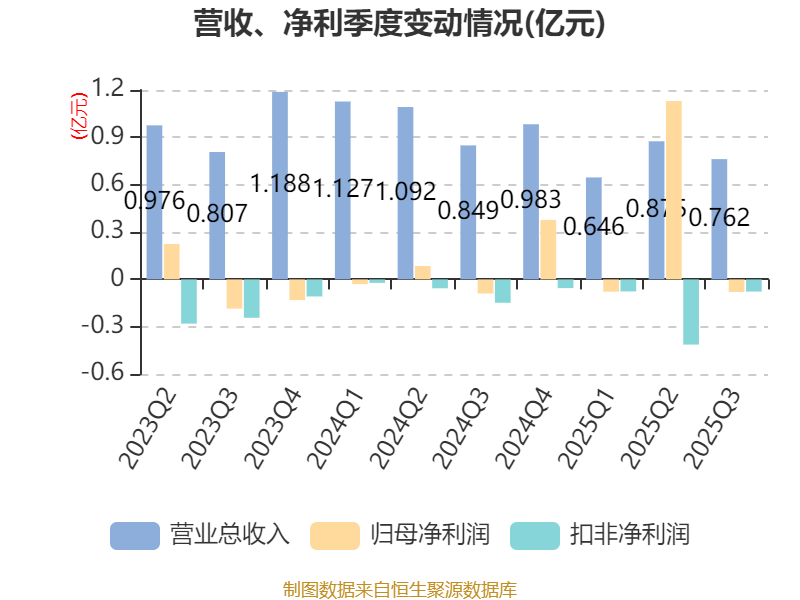 中证智能财讯亚太药业(002370)10月29日披露2025年第三季度报告。前三季度公司实现营业总收入2.28亿元,同比下降25.59%;归母净利润9719.5万元,同比扭亏;扣非净利润亏损5658.53万元,上年同期亏损2259.21万元;经营活动产生的现金流量净额为2354.9万元,同比下降34.35%;报告期内,亚太药业基本每股收益为0.1313元,加权平均净资产收益率为9.21%。
