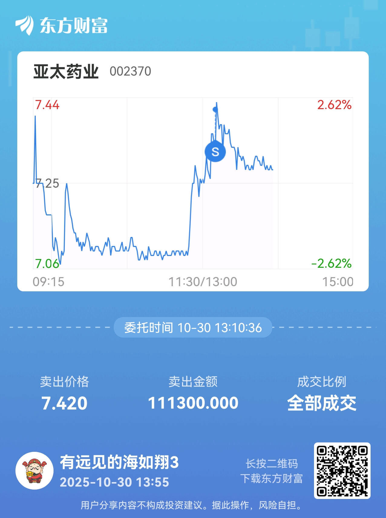 笔记:和昨天的走势一模一样!包括上午的高点都是7.28,参考昨天下午的盘早上我设置了7.42的条件单,因为知道再高一两分估计清不了仓,毕竟它拉高就几秒钟的事就又要下来!午睡一觉醒来清仓了!这股票有庄家在,持股的最好高抛低吸跟着庄做T,要不然它赚钱太慢了,没有很好的成长性!#复盘记录#