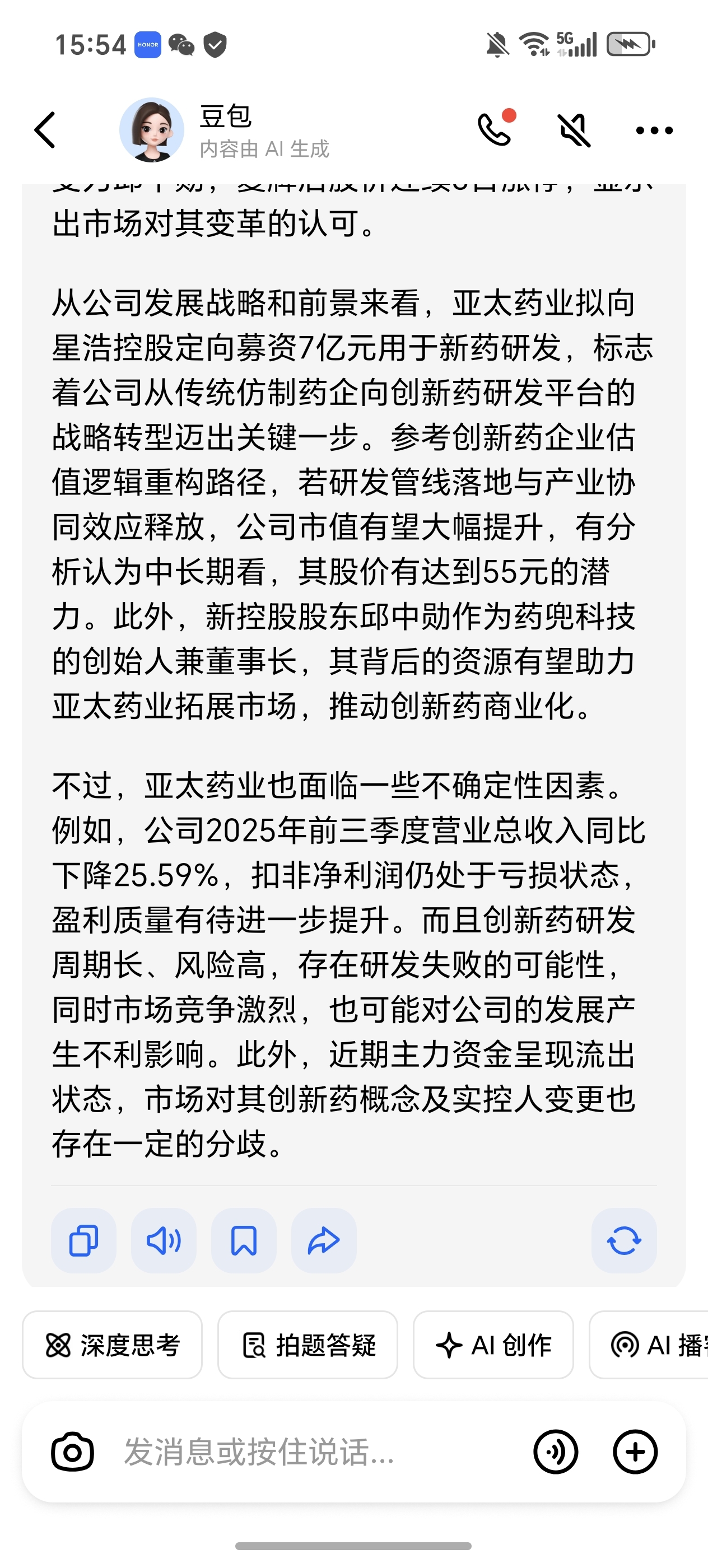 $亚太药业(SZ002370)$ 豆包是真敢说啊,亚太能到55元