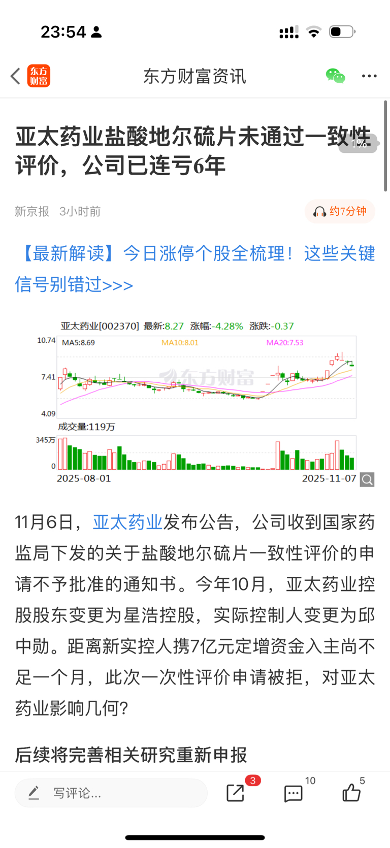 $亚太药业(SZ002370)$