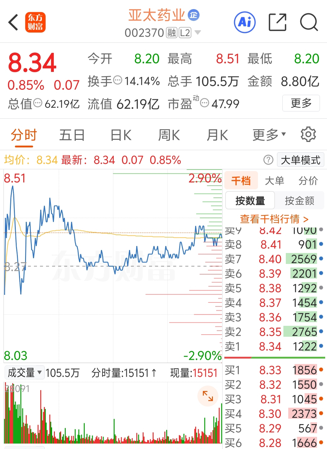 $亚太药业(SZ002370)$ 14点00-14点40小拉升,尾盘小出货。尾盘买一点~