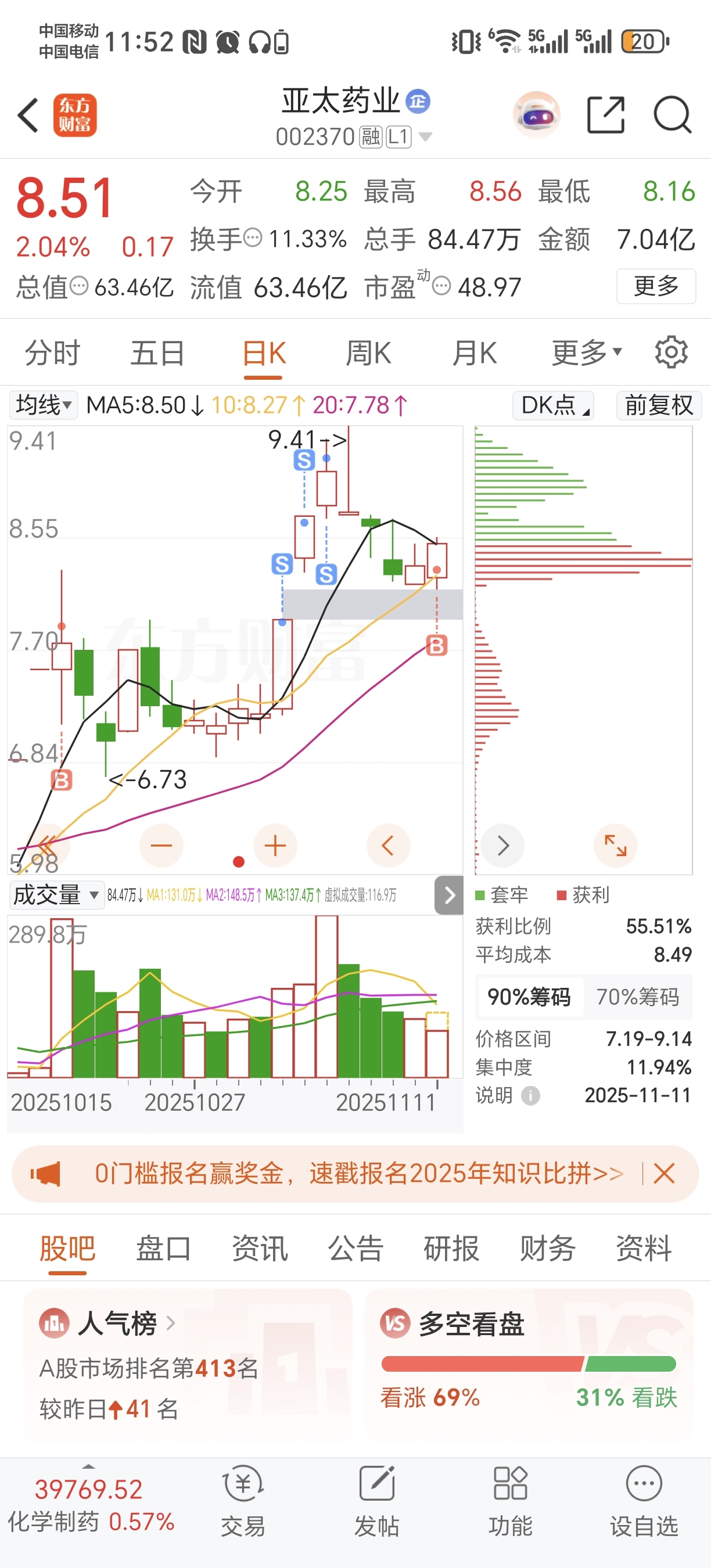 $亚太药业(SZ002370)$ 大盘跌了,我又来亚太避避险了,最近流感多发,大家注意别感冒了