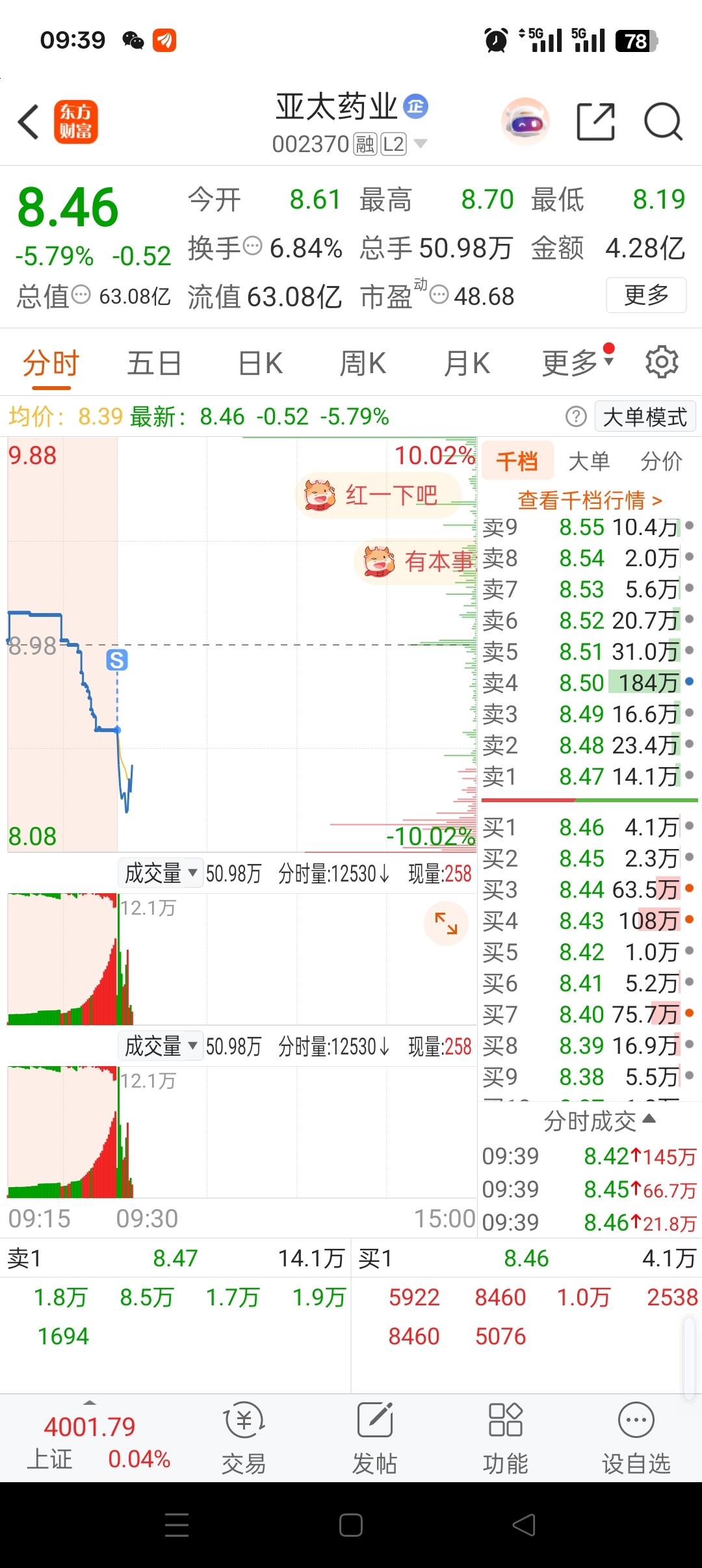 $亚太药业(SZ002370)$ 老规矩,隔夜单直接卖亚太。持有海马涨停,三木涨停