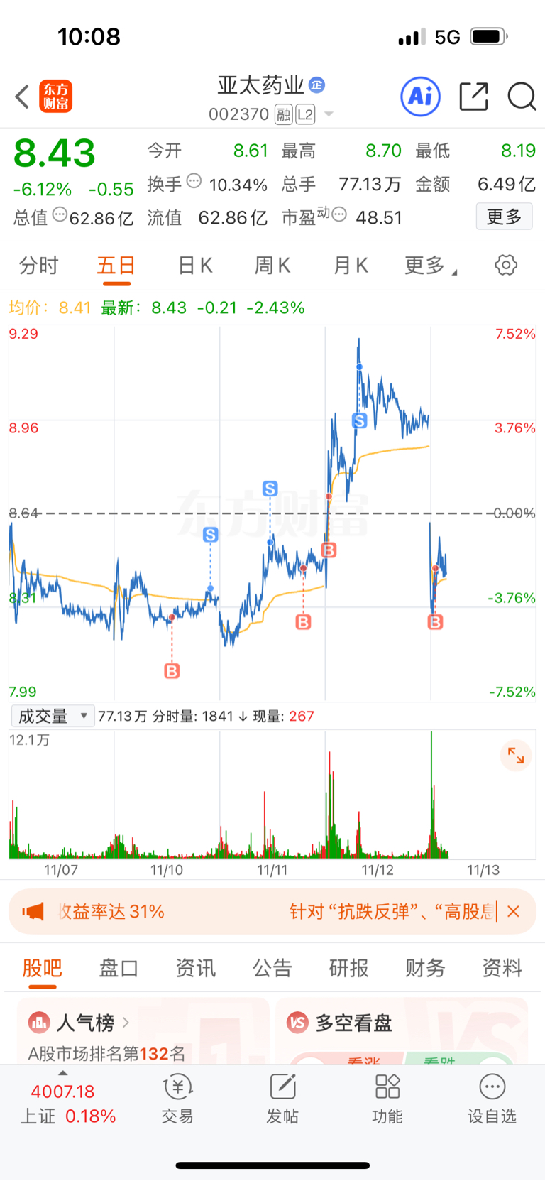 $亚太药业(SZ002370)$ 今天这个急跌是没想到的,太离谱了 好好走3浪趋势 来了个急刹车