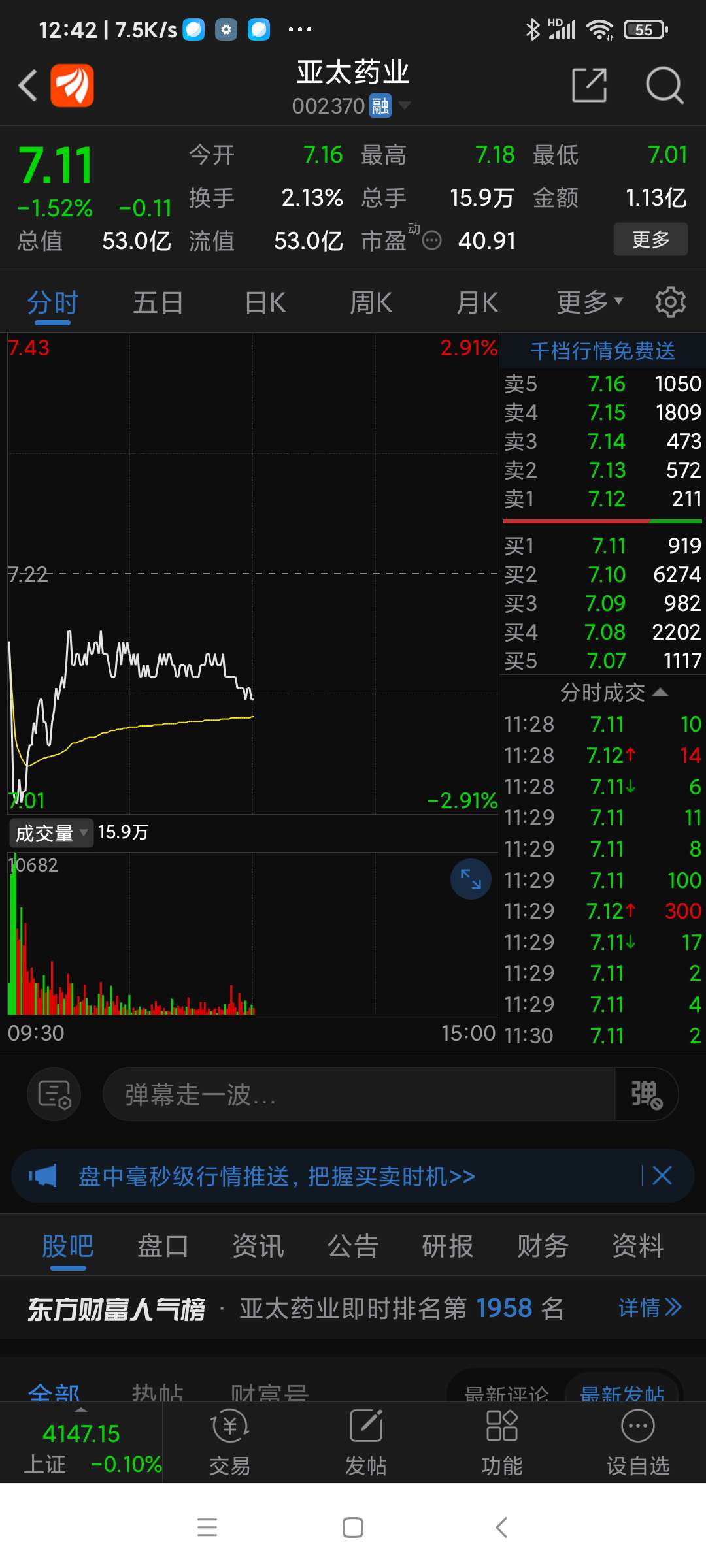 亚太药业,有人出货后市看跌。