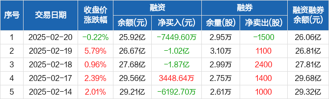 北方华创:连续3日融资净偿还累计3.64亿元(02-20)