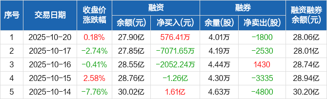 北方华创:融资净买入576.41万元,融资余额27.9亿元(10-20)