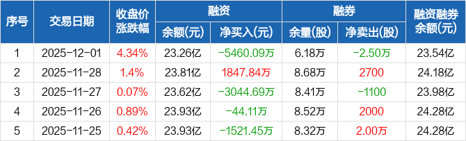 北方华创:融资净偿还5460.09万元,融资余额23.26亿元(12-01)