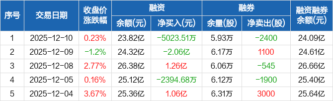北方华创:融资净偿还5023.51万元,融资余额23.82亿元(12-10)
