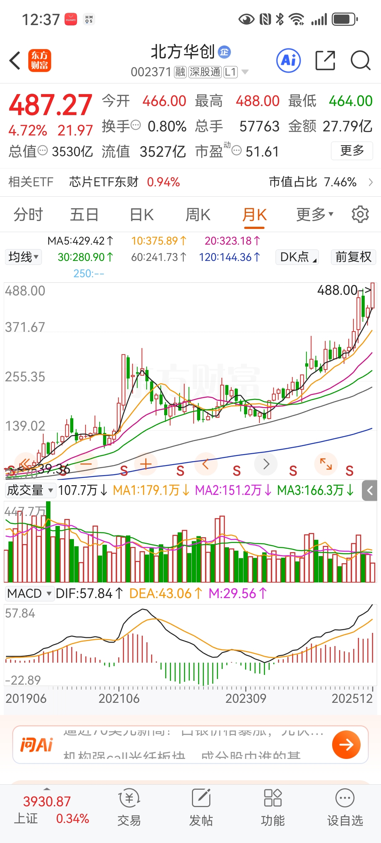 $北方华创(SZ002371)$ 见证历史新高!一览众山小