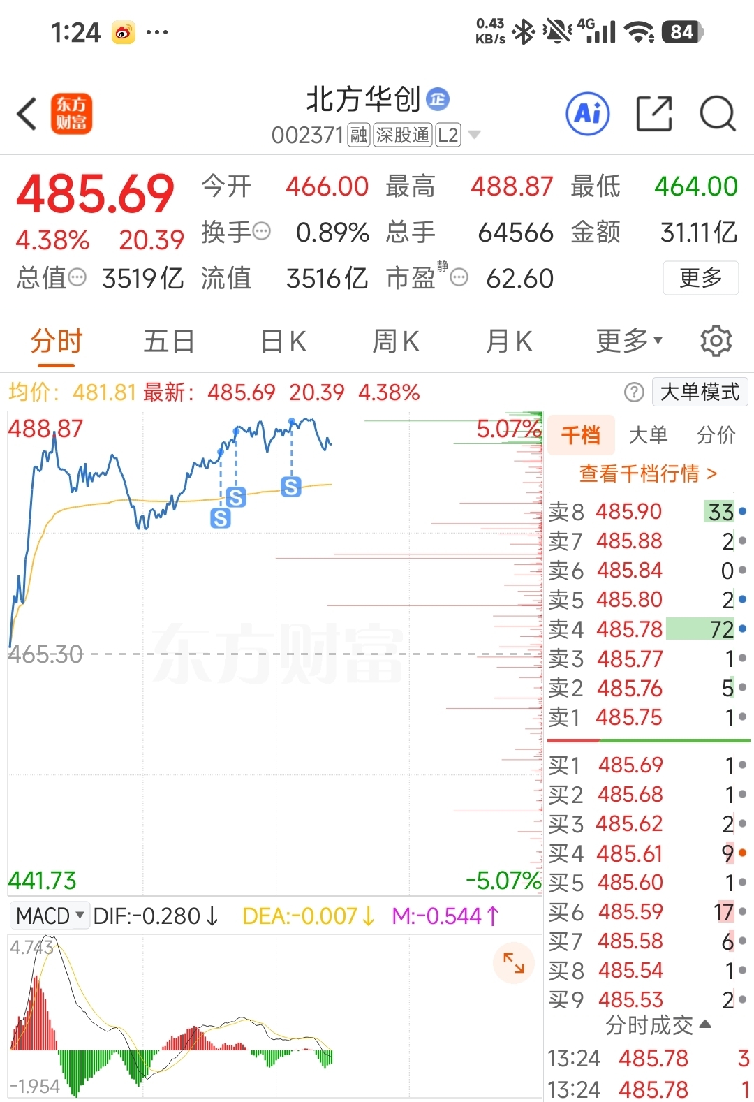 $北方华创(SZ002371)$ 华子我先走一步等着你回调我再来